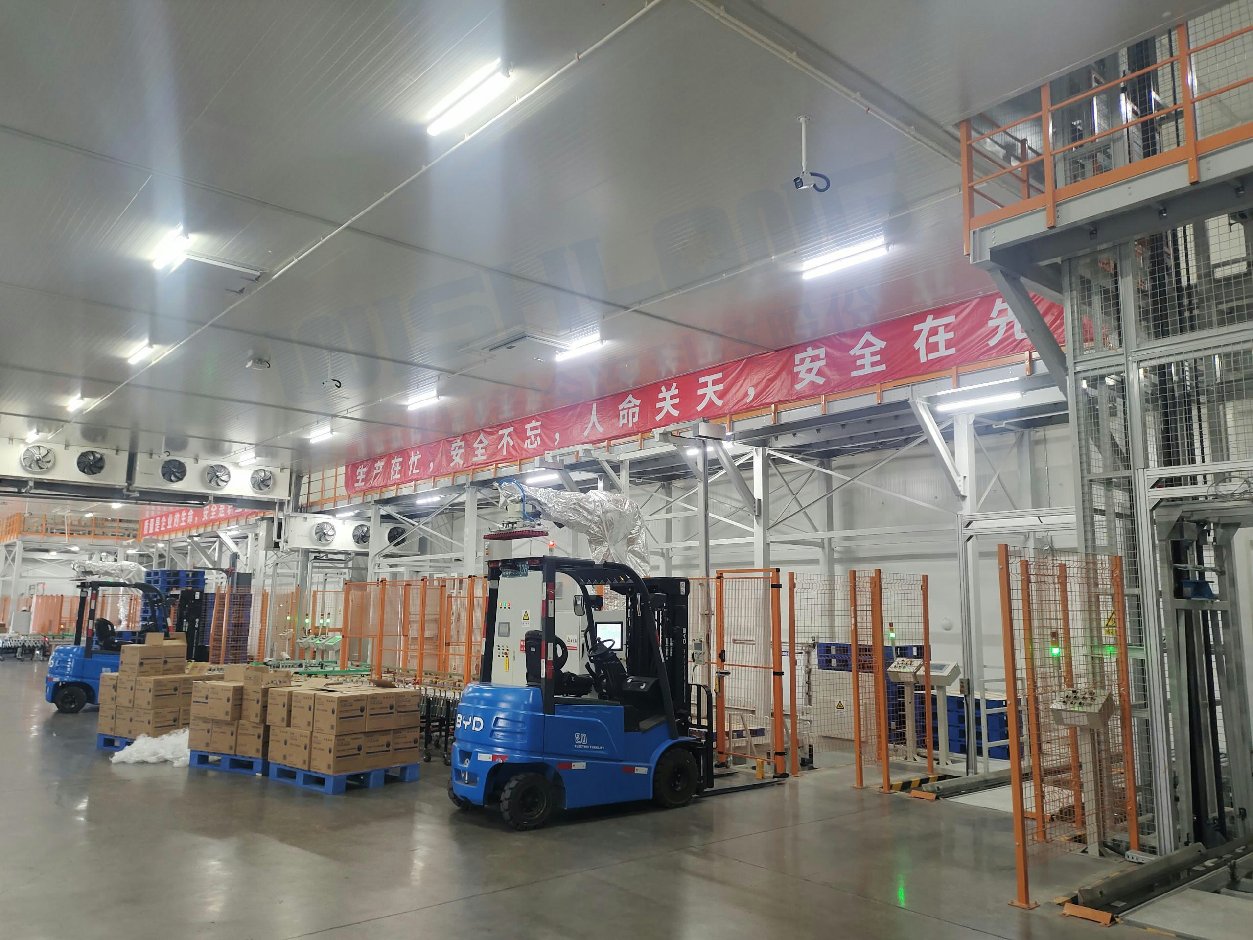 該項目位于內(nèi)蒙古自治區(qū)烏蘭察布市察哈爾工業(yè)園區(qū),地理位置優(yōu)越,交通便利,設(shè)有24米全自動立體高架冷庫,每棟冷庫設(shè)計貯藏噸位1.8萬噸,自動化程度及制冷系統(tǒng)配置高,全部采用國際進口品牌設(shè)備,獨特的氣流組織形式保證庫溫的均勻性,降低食品的干耗,熱氣融霜、余熱回收,系統(tǒng)整體節(jié)能30%,搭載智慧物聯(lián)網(wǎng)監(jiān)控系統(tǒng),為設(shè)備的高效、穩(wěn)定、安全運行保駕護航。