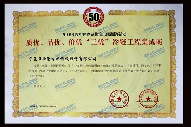 中冷聯(lián)盟2016年12月授予萬仕隆冷凍科技股份有限公司“2016優(yōu)秀會員稱號”,同時授予萬仕隆冷凍“質(zhì)優(yōu)、品優(yōu)、價優(yōu)”和“綠色、節(jié)能、安全”雙三優(yōu)證書,認(rèn)可萬仕隆在2016年中為制冷行業(yè)做出的杰出貢獻。