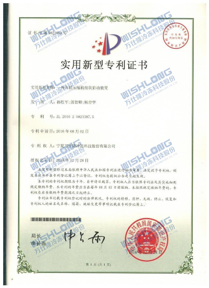 2016年寧夏萬仕隆冷凍科技股份有限公司依托技術(shù)人才儲(chǔ)備和二十年制冷領(lǐng)域豐富經(jīng)驗(yàn)的優(yōu)勢,持續(xù)技術(shù)創(chuàng)新共向中華人民共和國國家知識(shí)產(chǎn)權(quán)局提交10項(xiàng)專利技術(shù)申請,其中6項(xiàng)獲得實(shí)用新型專利。translaser.net