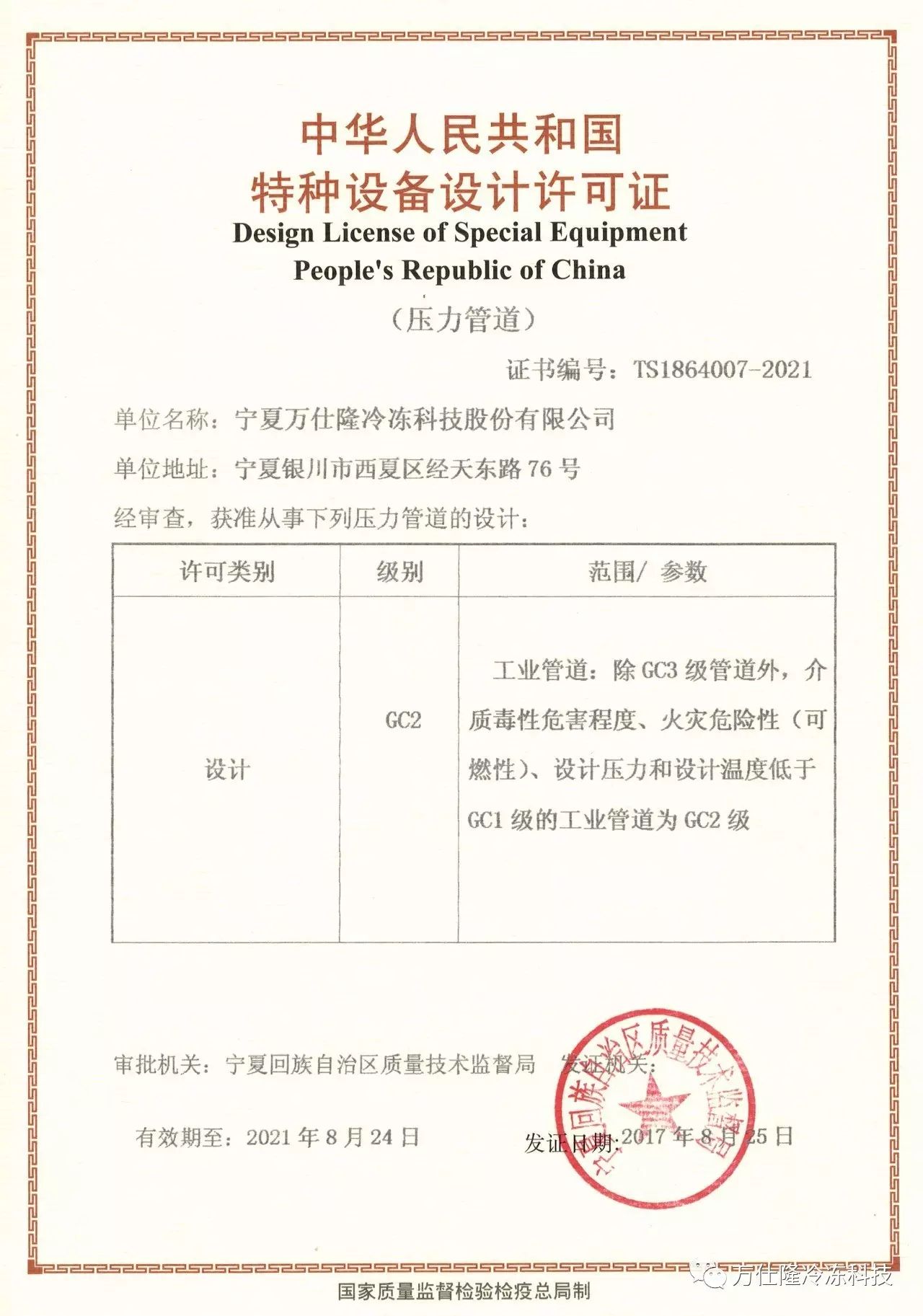 2017年7月底,我公司通過了國(guó)家質(zhì)檢總局GC2評(píng)審專家組對(duì)我公司GC2級(jí)壓力管道設(shè)計(jì)資質(zhì)的審查,現(xiàn)已取得壓力管道(GC2)設(shè)計(jì)資質(zhì)。