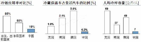 而國(guó)外的冷藏運(yùn)輸則興起于19世紀(jì)上半葉歐美國(guó)家的鐵路,距今已有150多年的歷史。發(fā)展時(shí)間上的差距也就決定了中國(guó)的冷鏈物流僅僅處于剛剛起步的階段,不論從冷藏率還是從管理水平來看都要遠(yuǎn)遠(yuǎn)落后于發(fā)達(dá)國(guó)家。