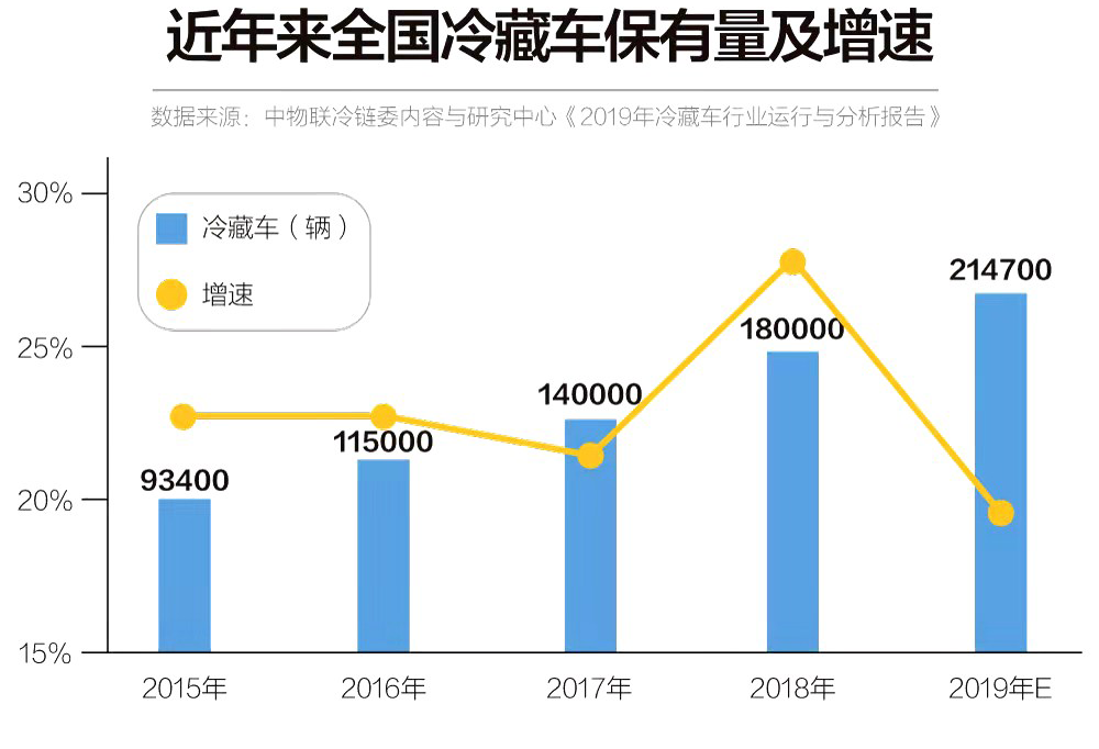 據(jù)中國物流與采購聯(lián)合會冷鏈物流專業(yè)委員會(簡稱“中物聯(lián)冷鏈委”)的不完全統(tǒng)計,自2013年我國冷藏車產(chǎn)量超過萬輛,到2018年期間都以超過20%的年增長率持續(xù)快速增長,截至2019年11月全國冷藏車市場保有量已突破21萬輛,年增長率較上年有所下滑,約為19.3%,進入穩(wěn)步增長階段。