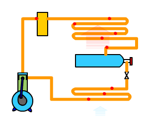 ▲ 三個單級壓縮循環(huán)組成的復疊式制冷循環(huán)系統(tǒng)