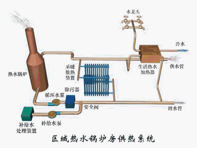 ▲ 區(qū)域熱水鍋爐房供熱系統(tǒng)