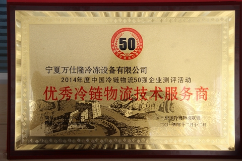 熱烈祝賀萬仕隆冷凍集團(tuán)寧夏公司在第七屆中國冷鏈物流行業(yè)年會中獲得"2013-2014中國冷鏈優(yōu)秀產(chǎn)品應(yīng)用案例金鏈獎"和"優(yōu)秀冷鏈物流技術(shù)服務(wù)商"兩項殊榮!