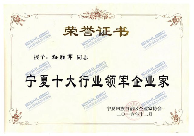 萬仕隆冷凍榮獲“寧夏十大行業(yè)領(lǐng)軍企業(yè)”等殊榮