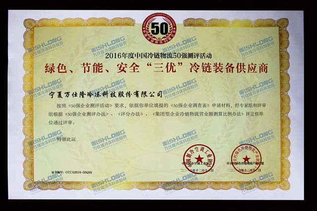 中冷聯(lián)盟2016年12月授予萬仕隆冷凍科技股份有限公司“2016優(yōu)秀會員稱號”,同時授予萬仕隆冷凍“質(zhì)優(yōu)、品優(yōu)、價優(yōu)”和“綠色、節(jié)能、安全”雙三優(yōu)證書,認(rèn)可萬仕隆在2016年中為制冷行業(yè)做出的杰出貢獻。