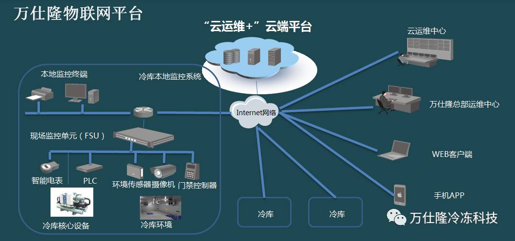 “云運維+智慧冷庫運維服務(wù)”是以集中控制和遠程監(jiān)控等方式,通過物聯(lián)網(wǎng)技術(shù)收集數(shù)據(jù)、云計算技術(shù)支撐平臺、大數(shù)據(jù)分析技術(shù)等,做到在設(shè)備維護方面具備報警、預(yù)警、自診斷等功能,節(jié)能方面具備能效預(yù)警、分析、動態(tài)能效管理等功能,同時可以無需專職人員進行崗位值守,使客戶在便捷應(yīng)用的基礎(chǔ)上,更為省心、省錢,為客戶創(chuàng)造更大價值。