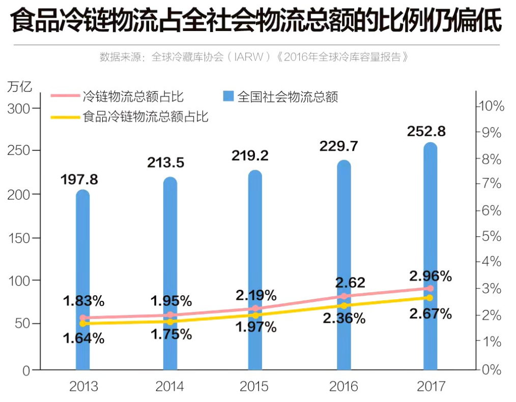 盡管冷庫和冷藏車的市場都在擴張,我國的冷鏈,并算不上發(fā)達。中國物流行業(yè)的方便高效享譽全球,但其中食品冷鏈的份額只占不足3%,處于很低的水平。